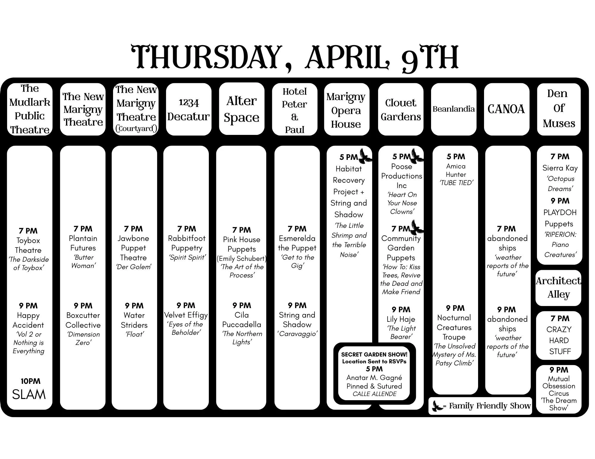 2026 Schedule April 9 - 13 Thursday - Monday